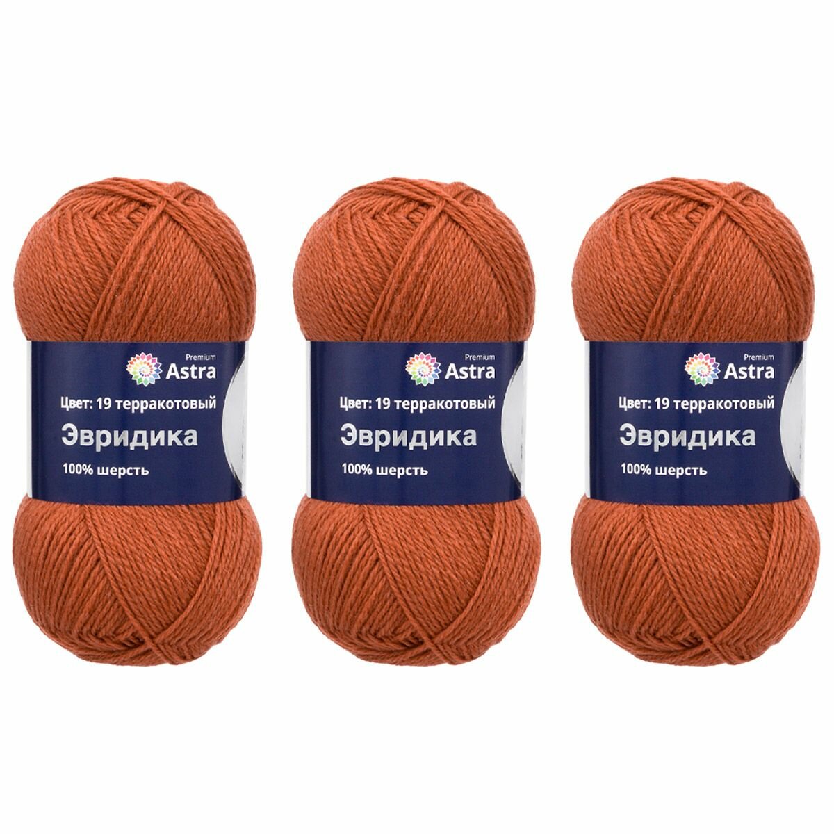 Купить Пряжа для вязания Astra Premium 'Эвридика' 100г, 200м (100% овечья шерсть) (19 терракотовый), 3 мотка