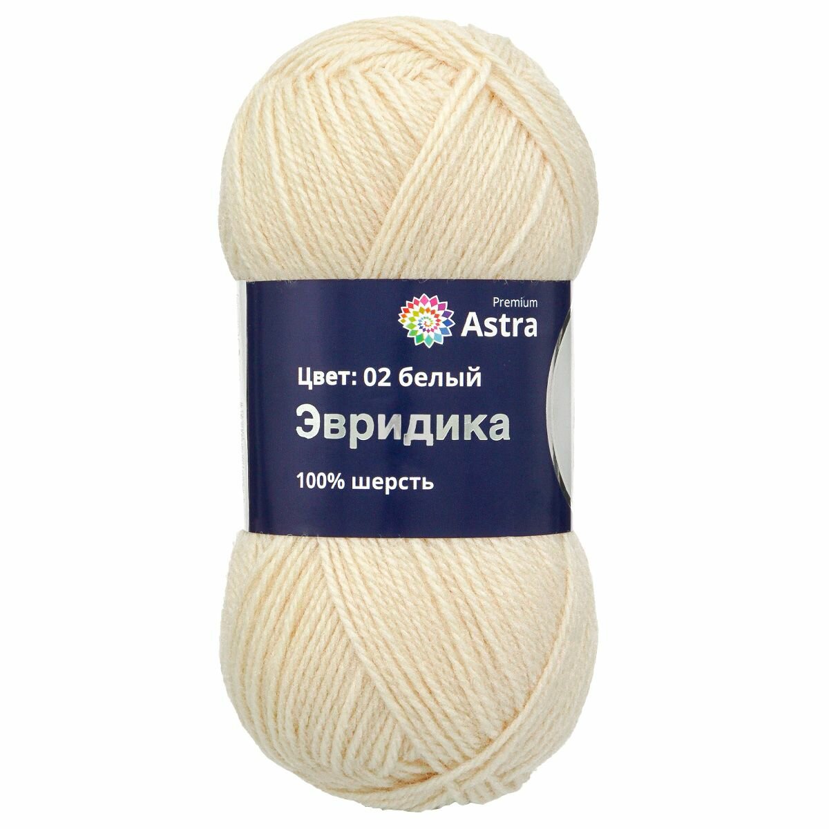 Купить Пряжа для вязания Astra Premium 'Эвридика' 100г, 200м (100% овечья шерсть) (02 белый), 3 мотка