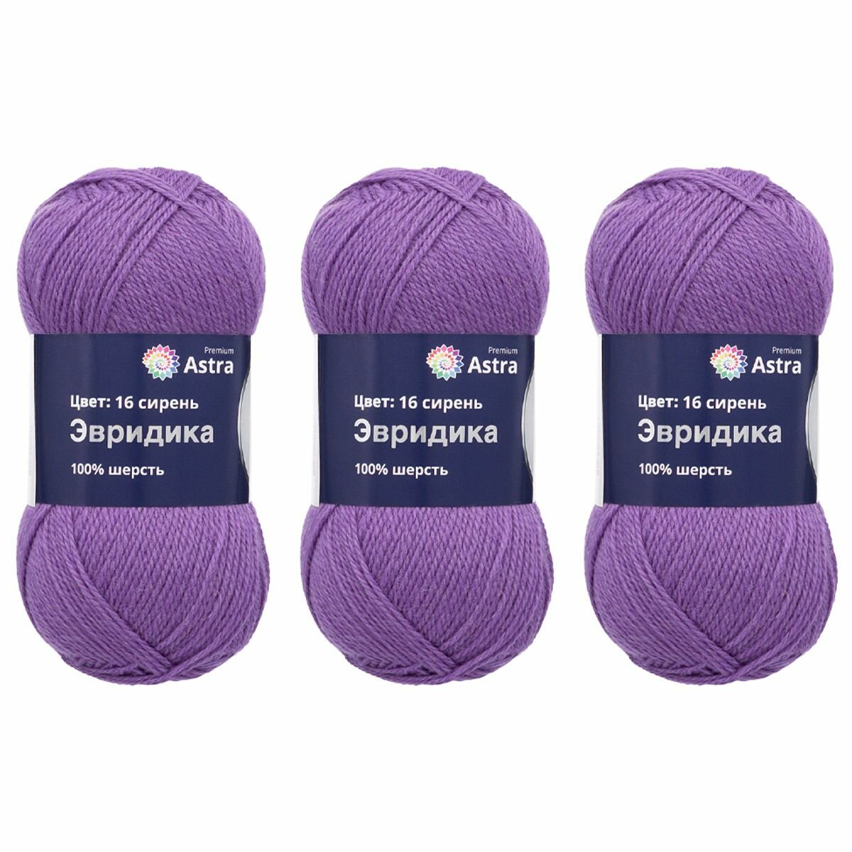 Купить Пряжа для вязания Astra Premium 'Эвридика' 100г, 200м (100% овечья шерсть) (16 сирень), 3 мотка