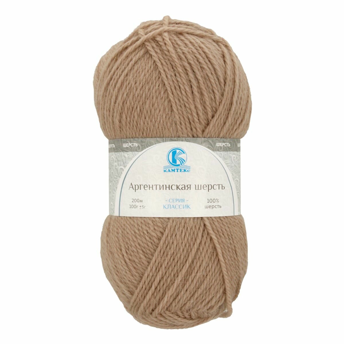 Купить Пряжа Камтекс "Аргентинская шерсть", цвет: 007 - Лен, 1 шт, 100% полутонкая шерсть, 100 г. 200 м.