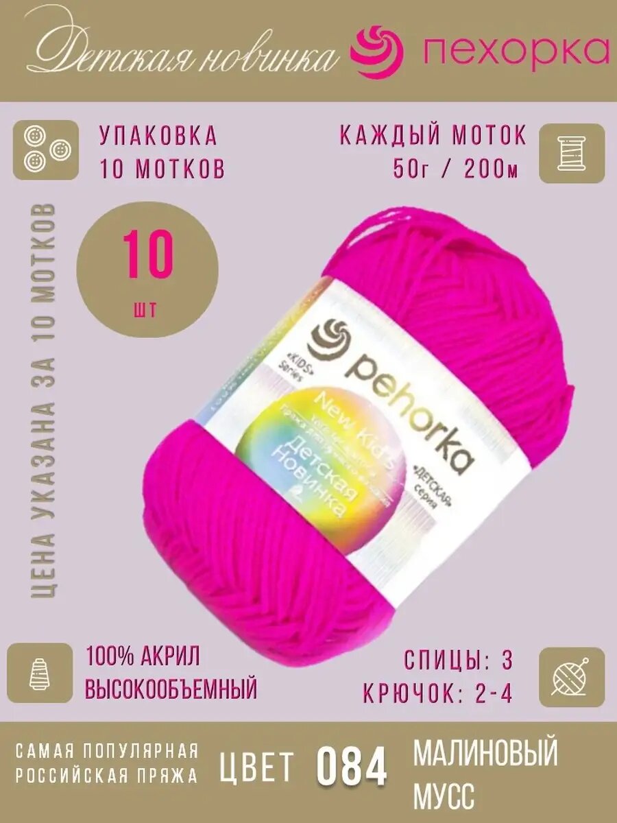 Купить 84-Малиновый мусс 10 мотков Пряжа Детская новинка