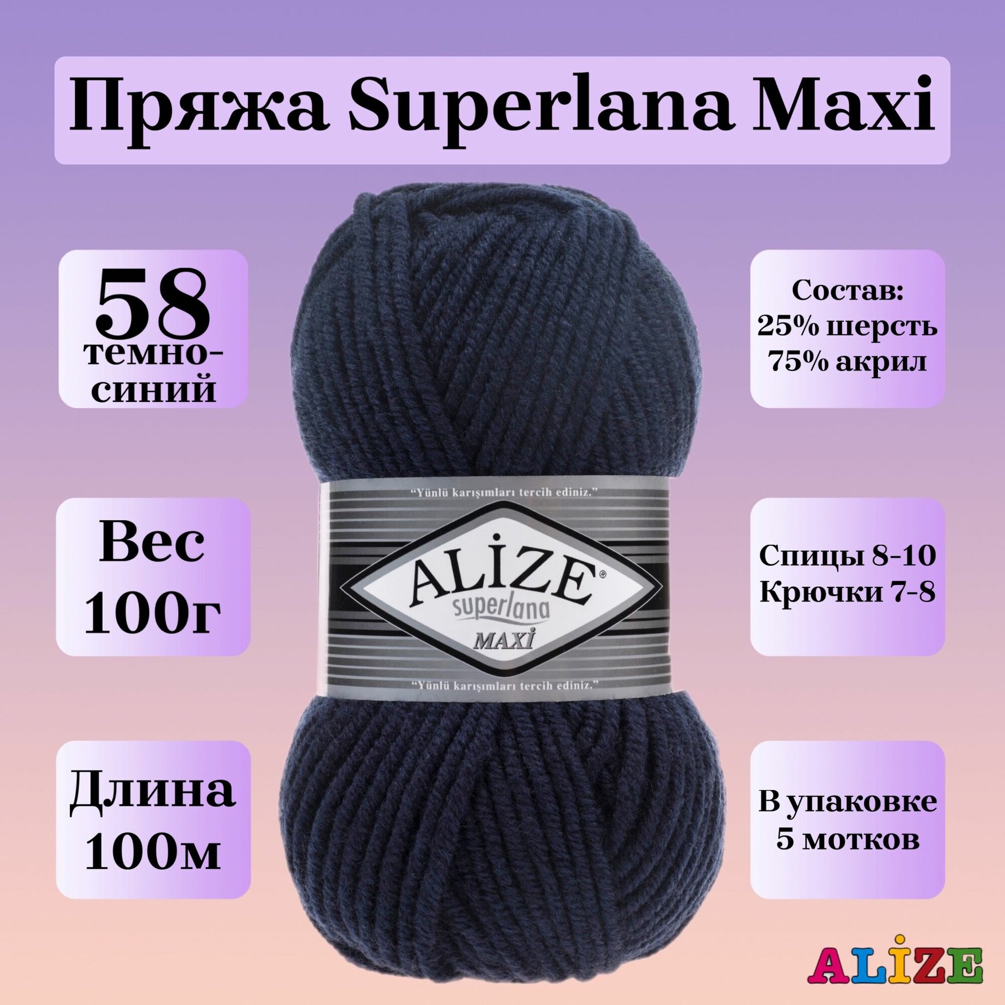 Купить Пряжа для вязания Alize Superlana Maxi, цвет 58 темно-синий, 100г, 100м, 5шт/упак