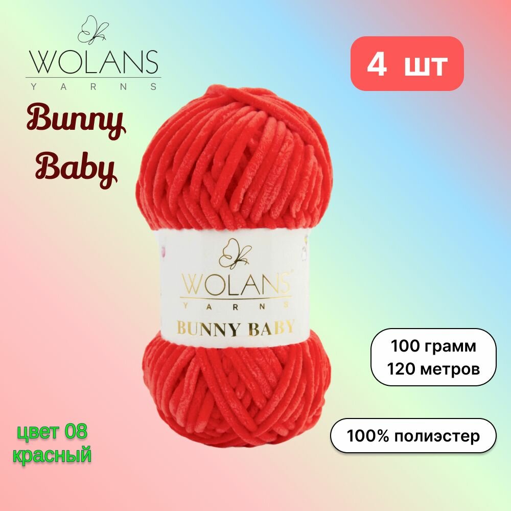 Купить Пряжа Wolans Bunny Baby Красный (08) 4 мотка 100 г/120 м (100% микрополиэстер) воланс банни беби