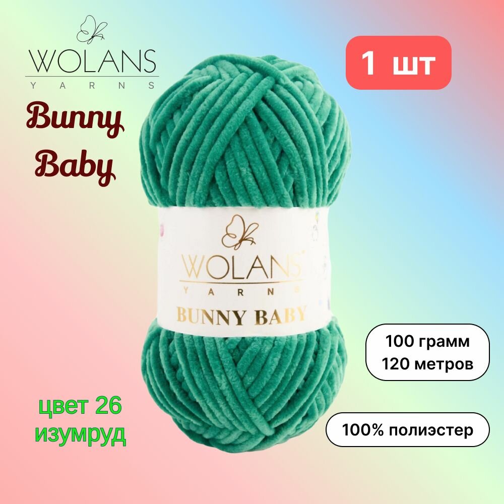 Купить Пряжа Wolans Bunny Baby Изумруд (26) 1 моток 100 г/120 м (100% микрополиэстер) воланс банни беби
