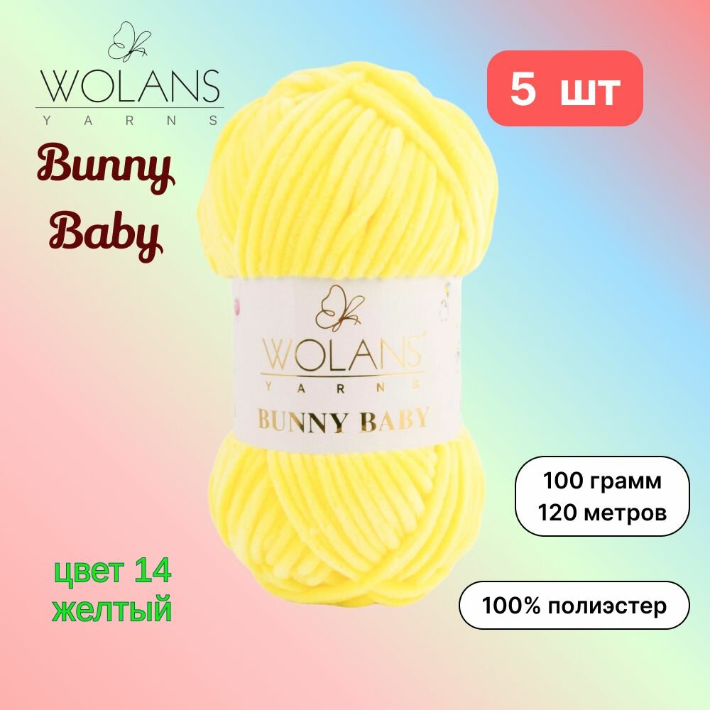 Купить Пряжа Wolans Bunny Baby Желтый (14) 5 мотков 100 г/120 м (100% микрополиэстер) воланс банни беби