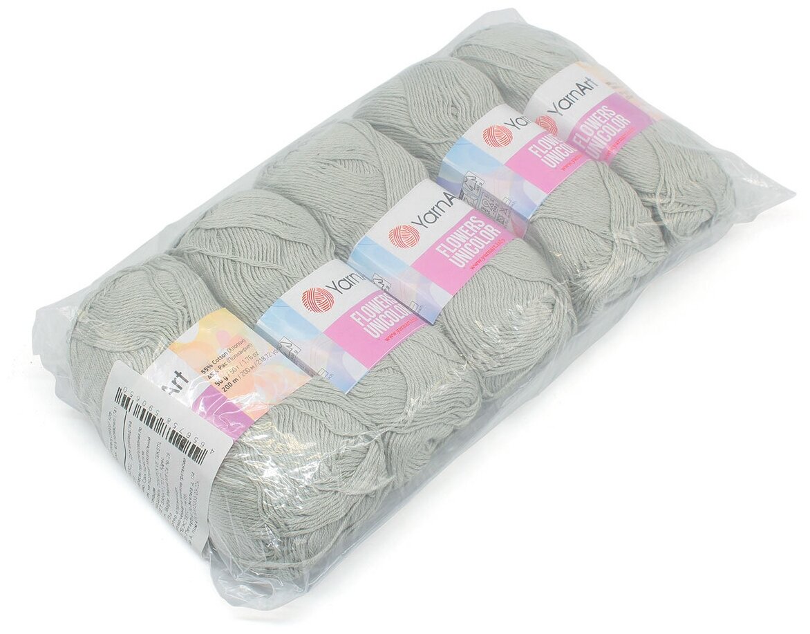 Купить Пряжа Flowers Unicolor YarnArt, св. серый - 741, 55% хлопок, 45% акрил, 5 мотков, 50 г, 200 м.