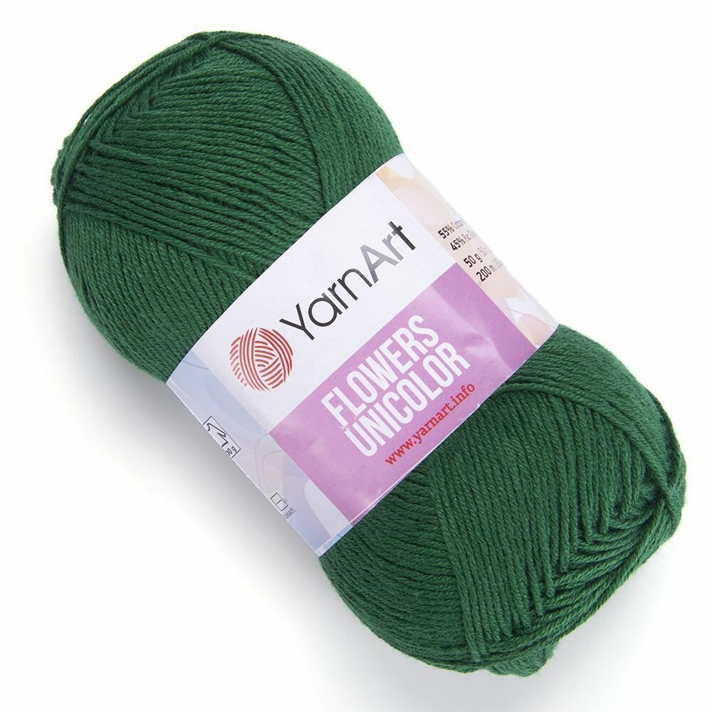 СохранитьПряжа Flowers Unicolor YarnArt, зеленый - 758, 55% хлопок, 45% акрил, 5 мотков, 50 г, 200 м. интересное: