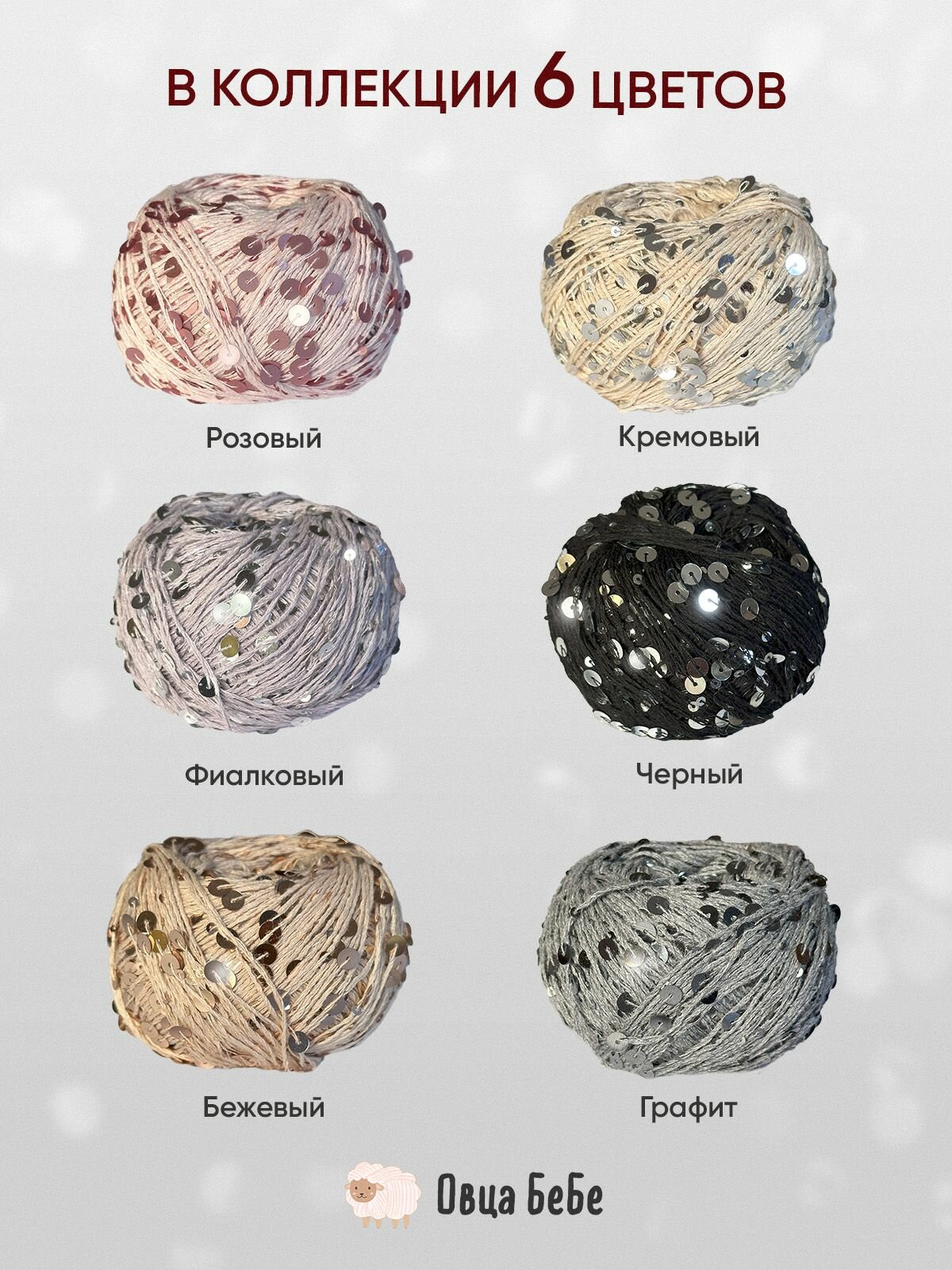 Пряжа для вязания с пайетками"Let's Glow" Овца БеБе, хлопок, бежевая, 2 мотка