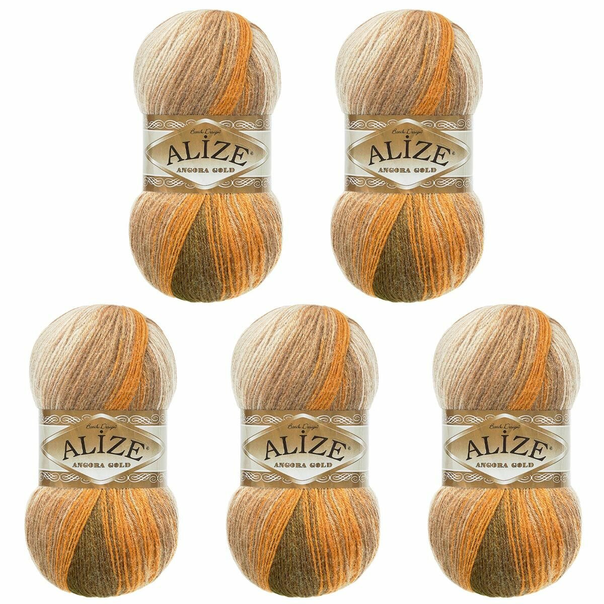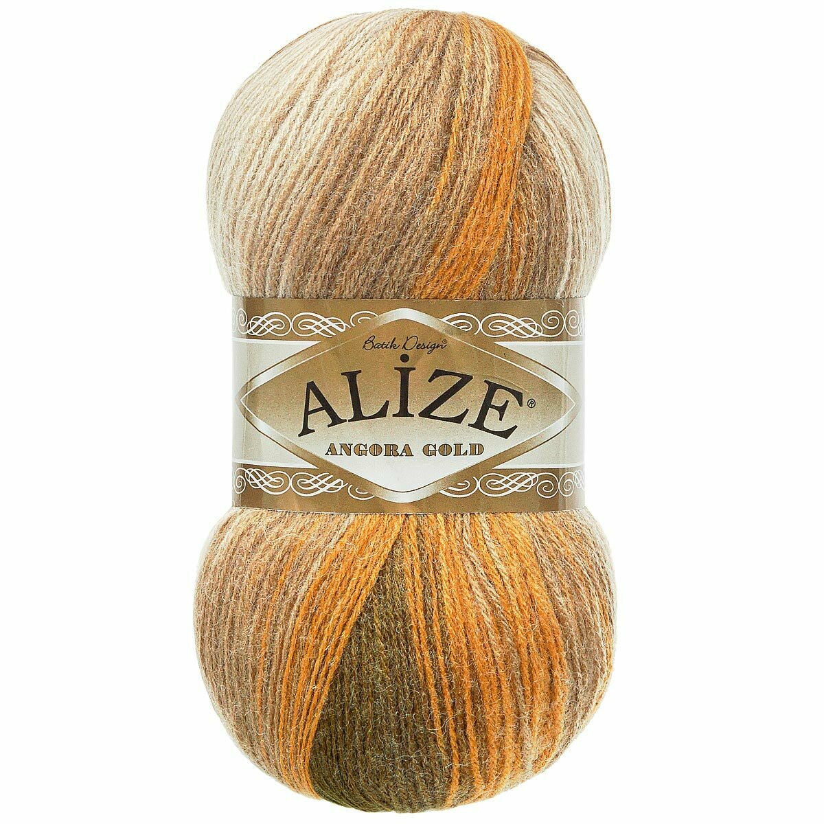 Пряжа ALIZE ANGORA GOLD BATIK, горц-болото-беж - 5850, 20% шерсть, 80% акрил, 5 мотков, 100 г, 550 м.