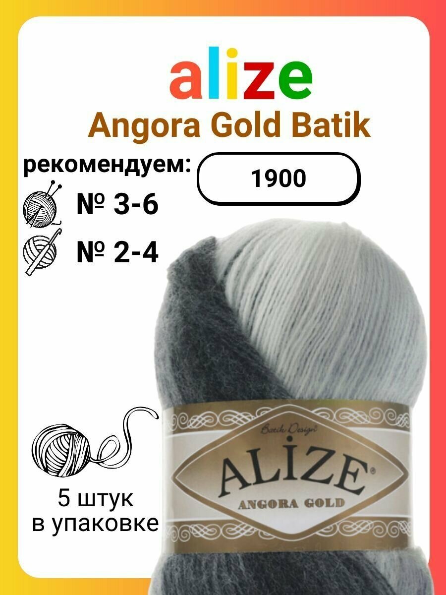 Пряжа для вязания Alize Angora Gold Batik, цвет 1899, 100г, 550м, 5шт/упак