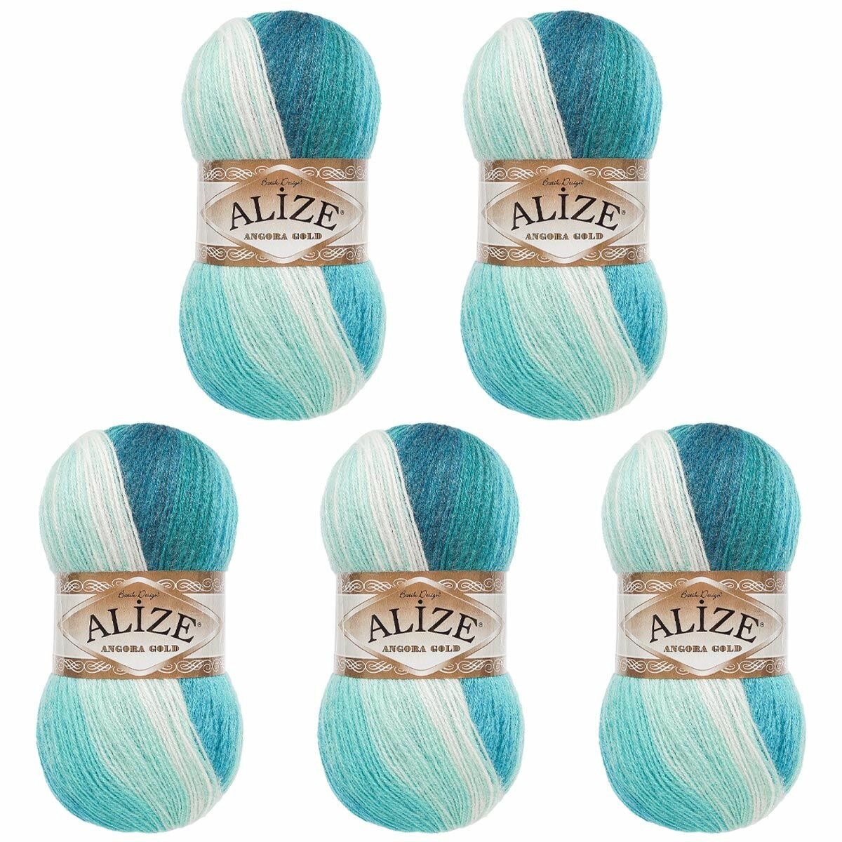 Пряжа ALIZE ANGORA GOLD BATIK, бирюза-белый - 1892, 20% шерсть, 80% акрил, 5 мотков, 100 г, 550 м.