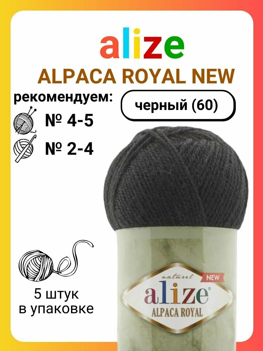 Купить Пряжа Alpaca royal new, Alize, черный - 60, 55% aкрил, 30% шерсть, 15% aльпака, 5 мотков, 100 г, 250 м.