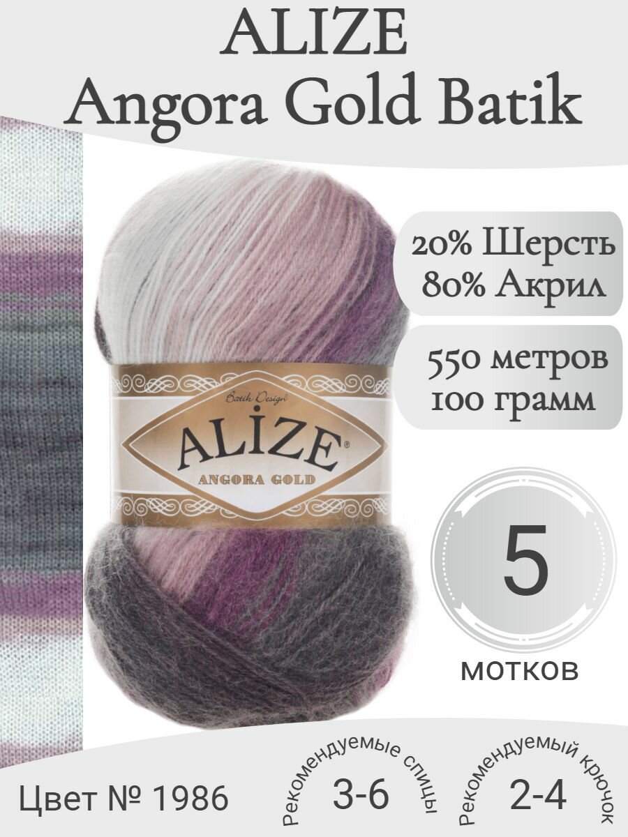 Пряжа Alize Angora Gold Batik: 1984, 5 шт 550 м 100 г, 20% шерсть, 80% акрил