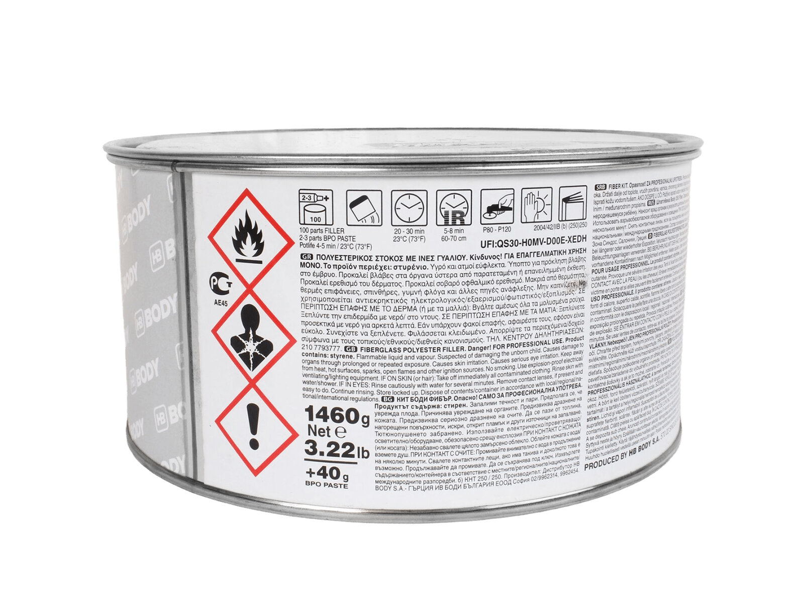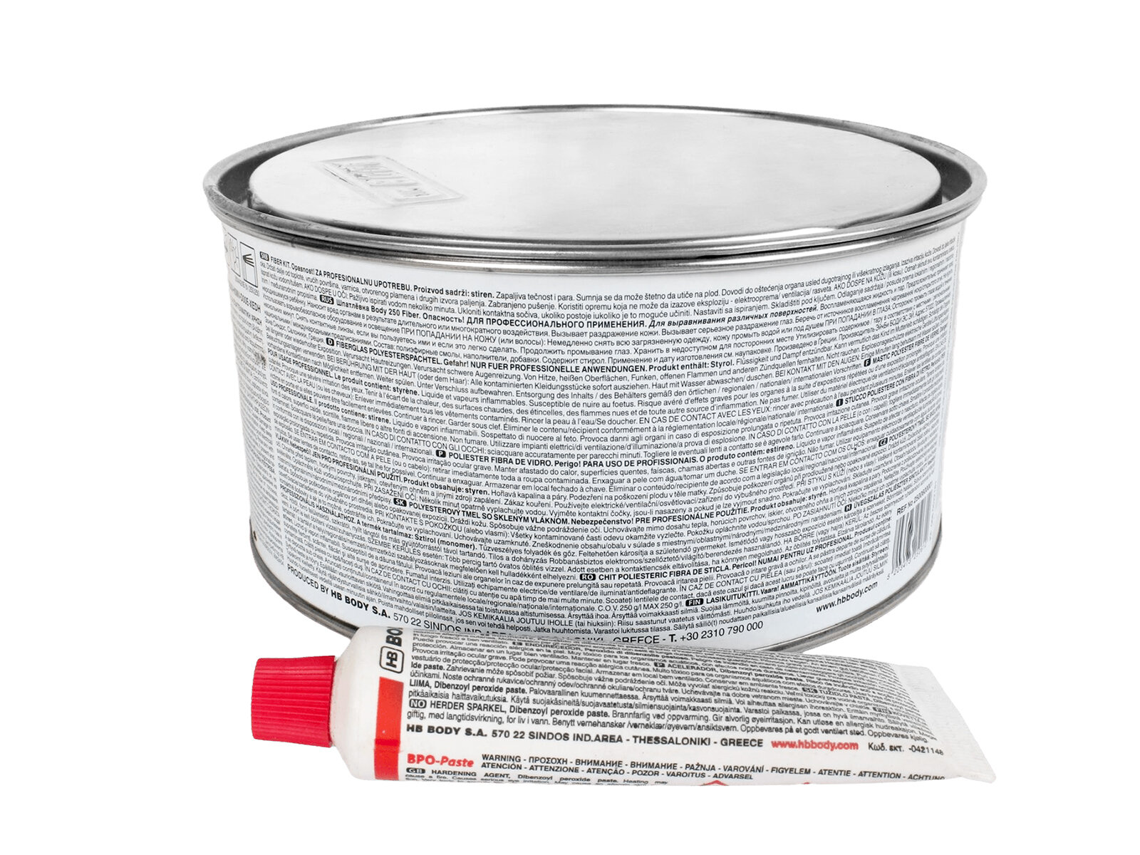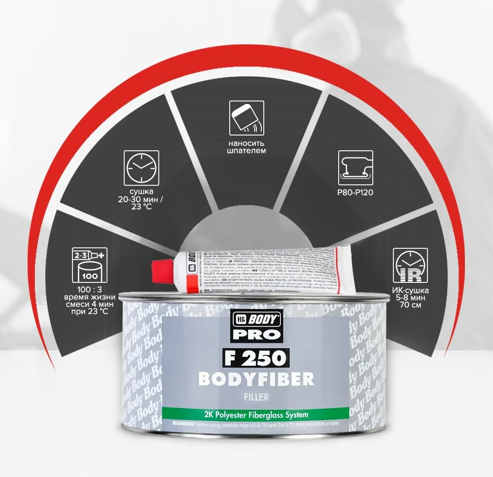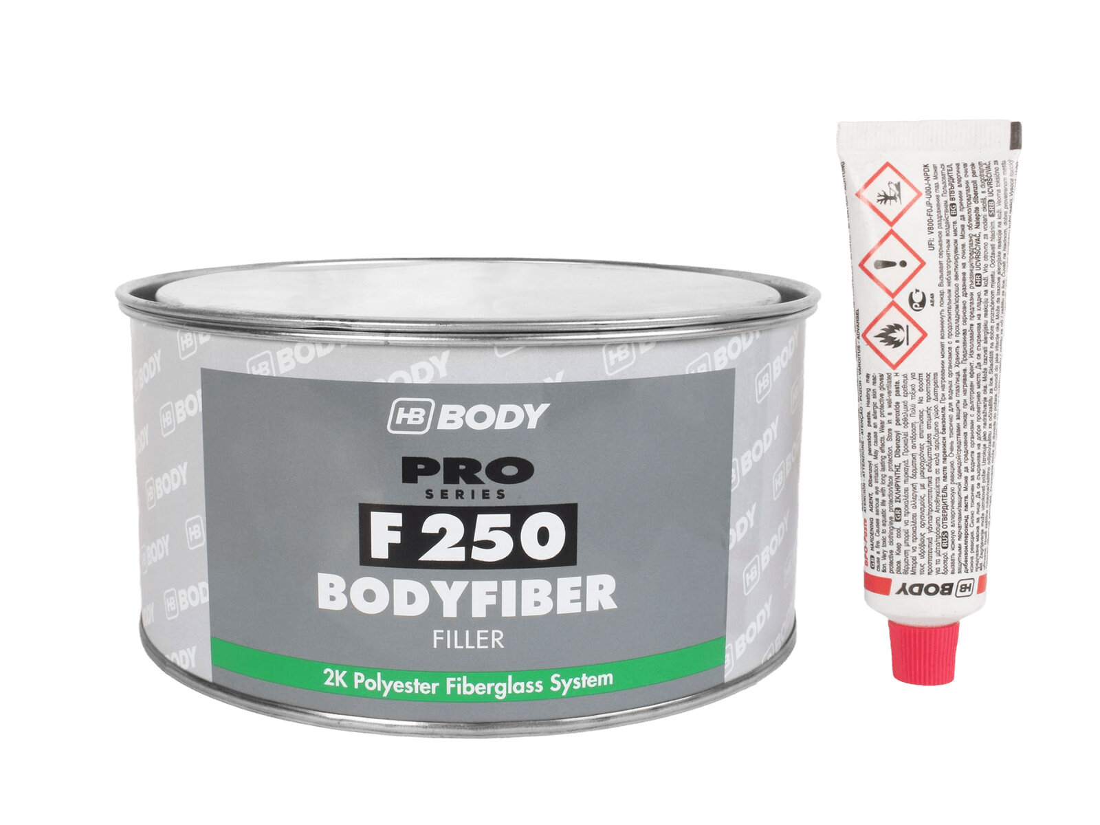 Шпатлевка со стекловолокном для кузова автомобиля HB BODY 250 FIBER 0,75 кг / 2К шпатлевка со стекловолокном / отвердитель в комплекте