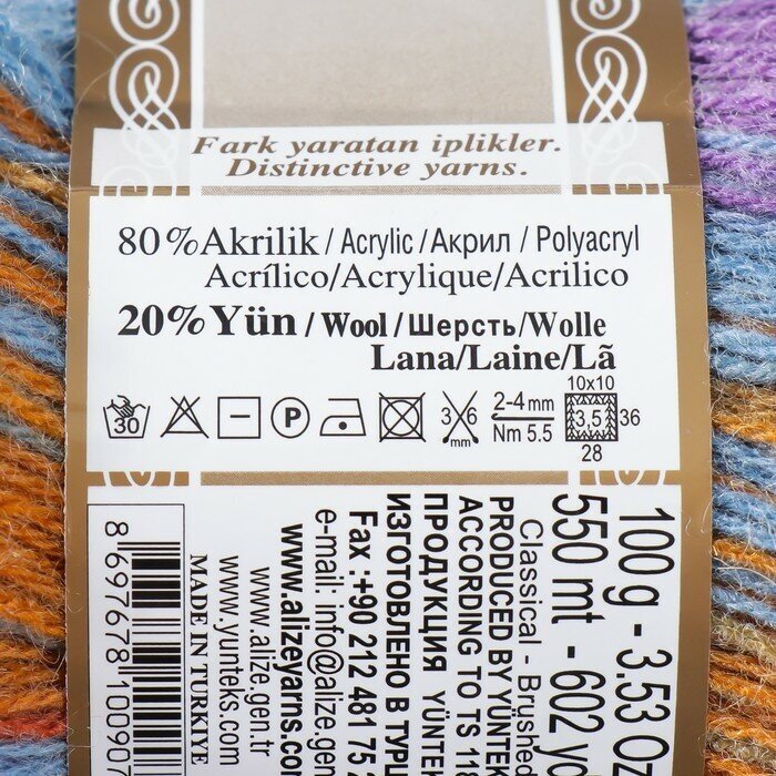 Пряжа для вязания ALIZE 'Angora Gold Batik', 100г, 550м (80% акрил, 20% шерсть), ТУ (1984 секционный), 5 мотков