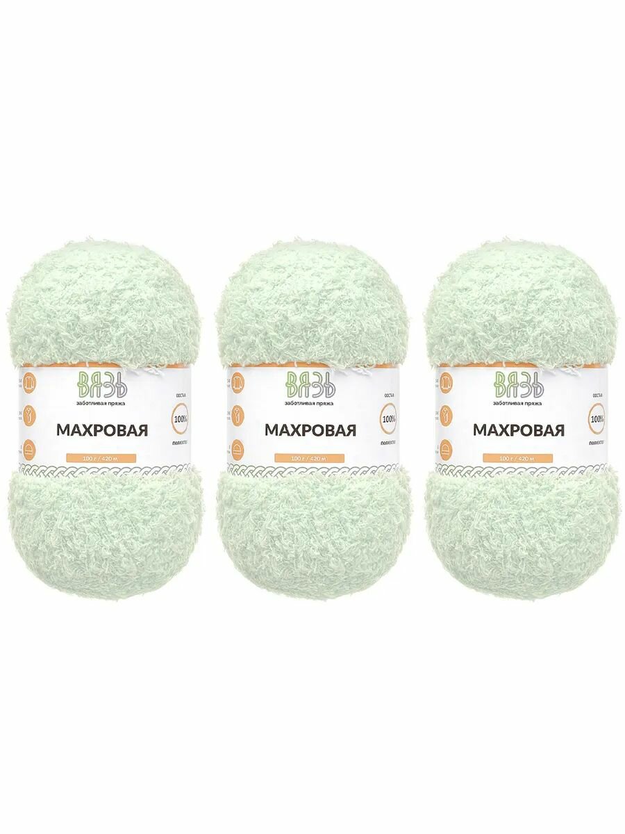 Купить Пряжа для вязания Вязь 'Махровая' 100г, 420м (100% полиэстер) (404 ледяная мята), 3 мотка
