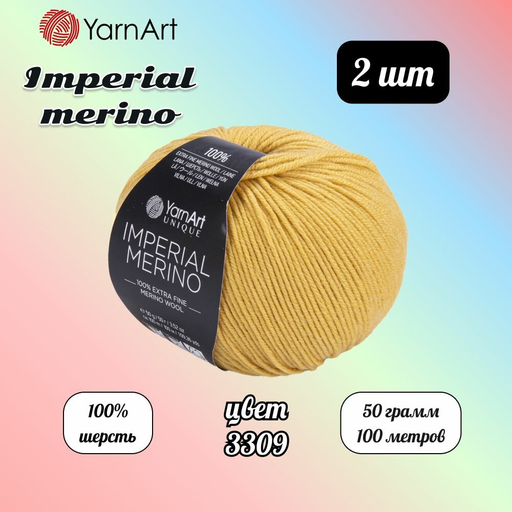 Купить Пряжа YarnArt Imperial Merino Горчичный (3309) 2 мотка 50 г/100 м (100% шерсть) Ярнарт империал мерино