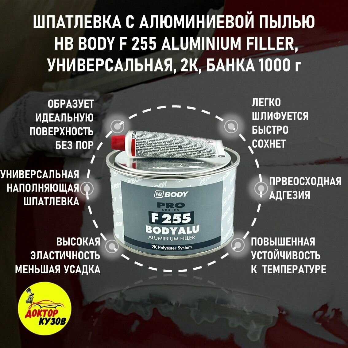 Шпатлевка с алюминиевым наполнителем HB BODY PRO F255 ALU 1,8 кг / 2К шпатлевка с отвердителем в комплекте для кузова автомобиля