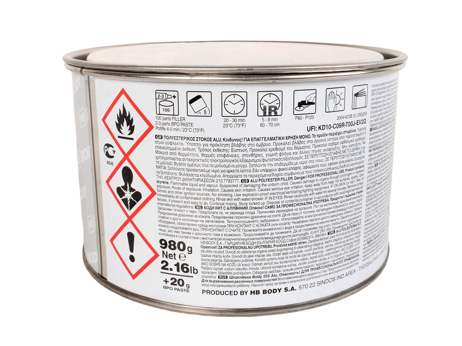 Шпатлевка Body PRO F 255 BODYALU ALUMINIUM FILLER 980г + 20г отвердитель (комплект)