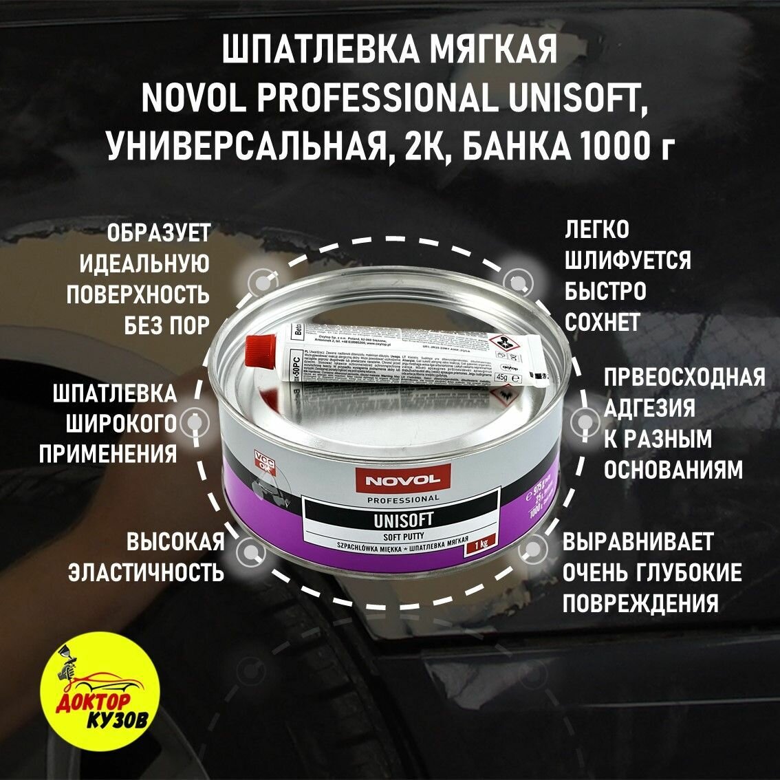 Шпатлевка автомобильная полиэфирная 1кг NOVOL UNISOFT Soft Putty, бежевая + отвердитель / Автошпатлевка универсальная / Шпаклевка для машины, 1153