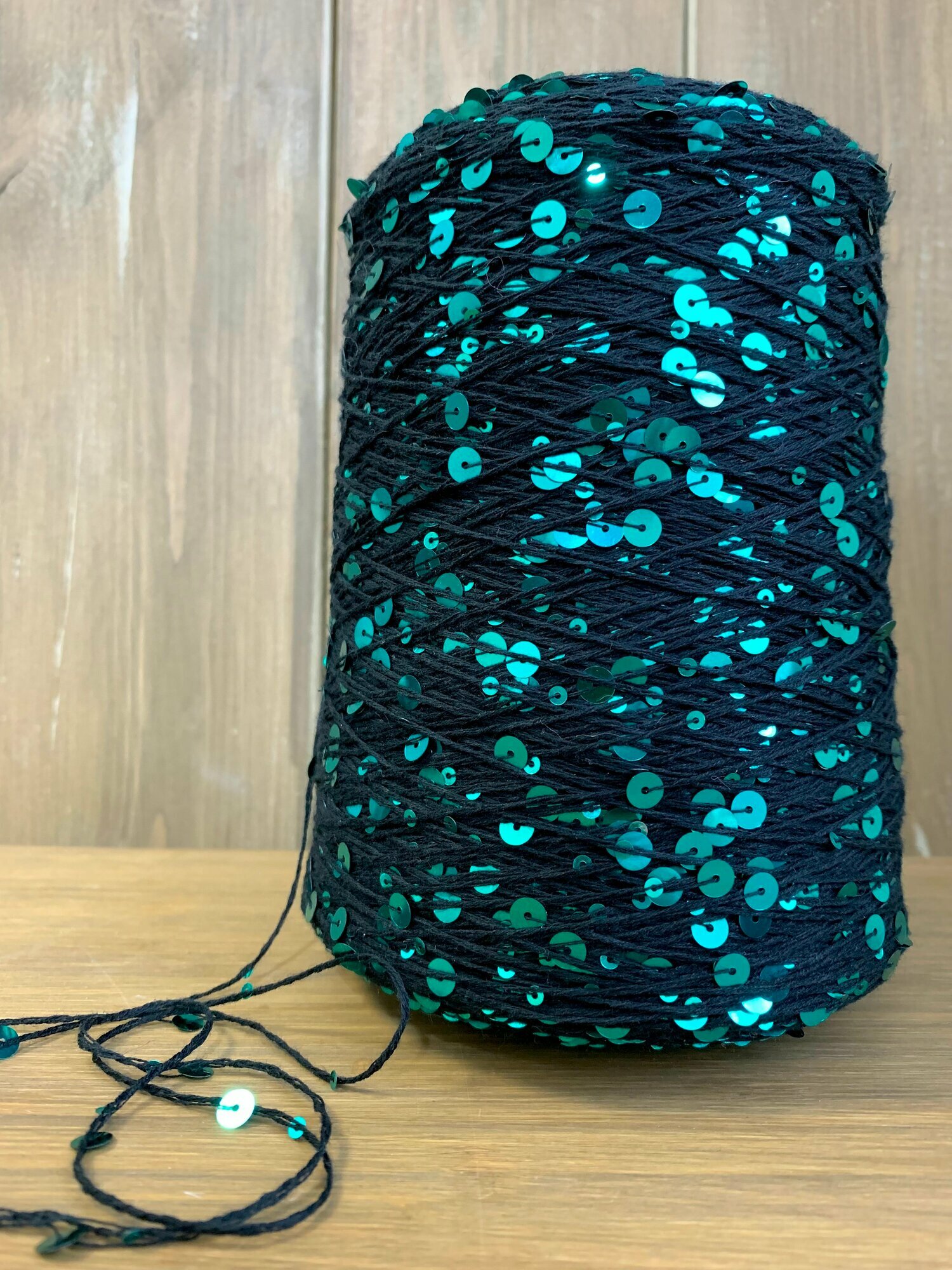 Купить Королевские пайетки на хлопке 6+3 мм, 100% хлопок, 320 м в 100 гр, 50 гр, Черный пайетки зеленые