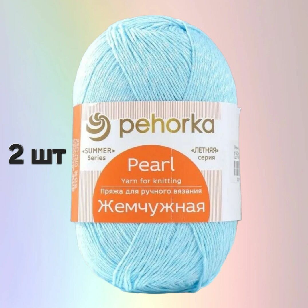 Пряжа Пехорка Жемчужная Светло-голубой (60) 2 мотка 100 г/425 м (50% хлопок, 50% вискоза)