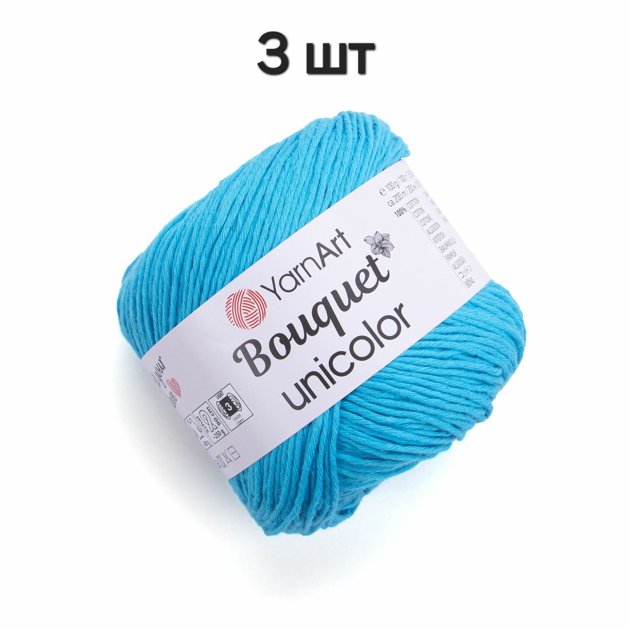 Купить Пряжа YarnArt Bouquet Unicolor Бирюзовый (3227) 3 мотка 100 г/200 м (100% хлопок) ярнарт букет юниколор однотонная