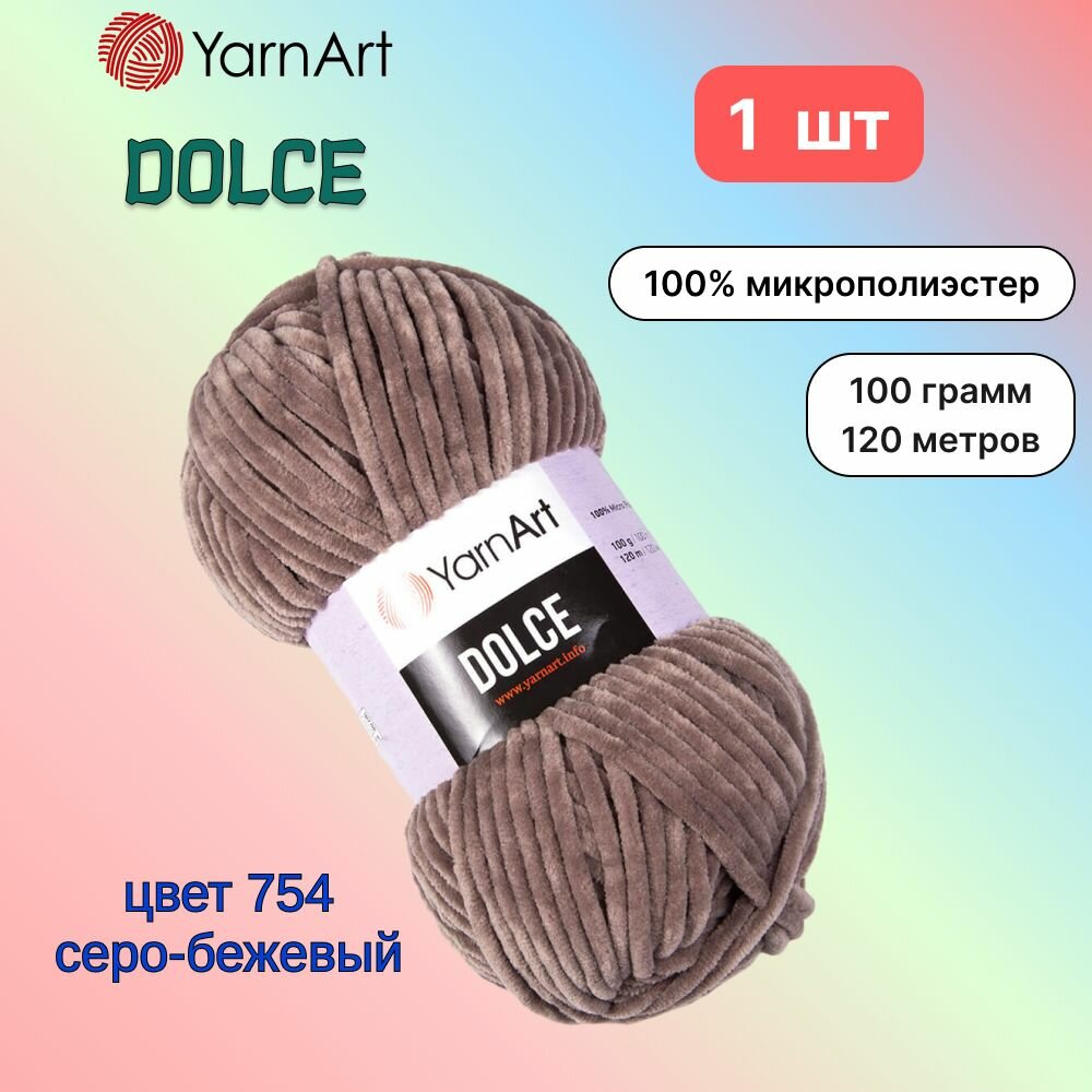 Пряжа YarnArt Dolce Серо-бежевый (754) 1 моток 100 г/120 м (100% микрополиэстер) ярнарт дольче интересное: