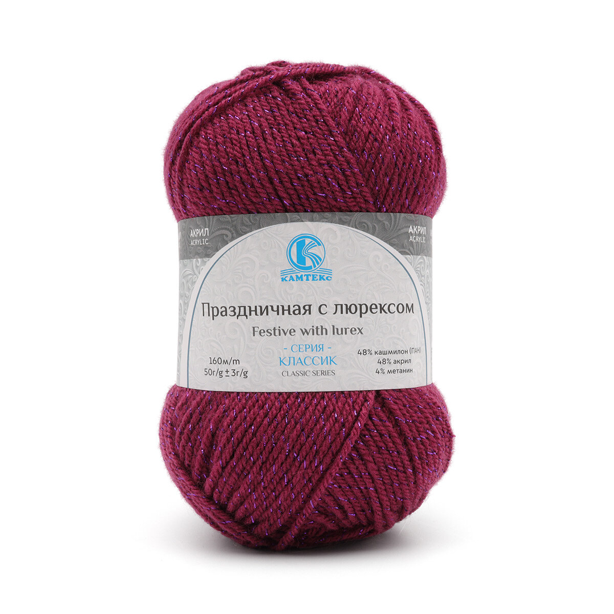 Пряжа для вязания Камтекс 'Праздничная с люрексом' 50г, 160м (кашмилон, акрил, метанит) (088 брусника), 10 шт