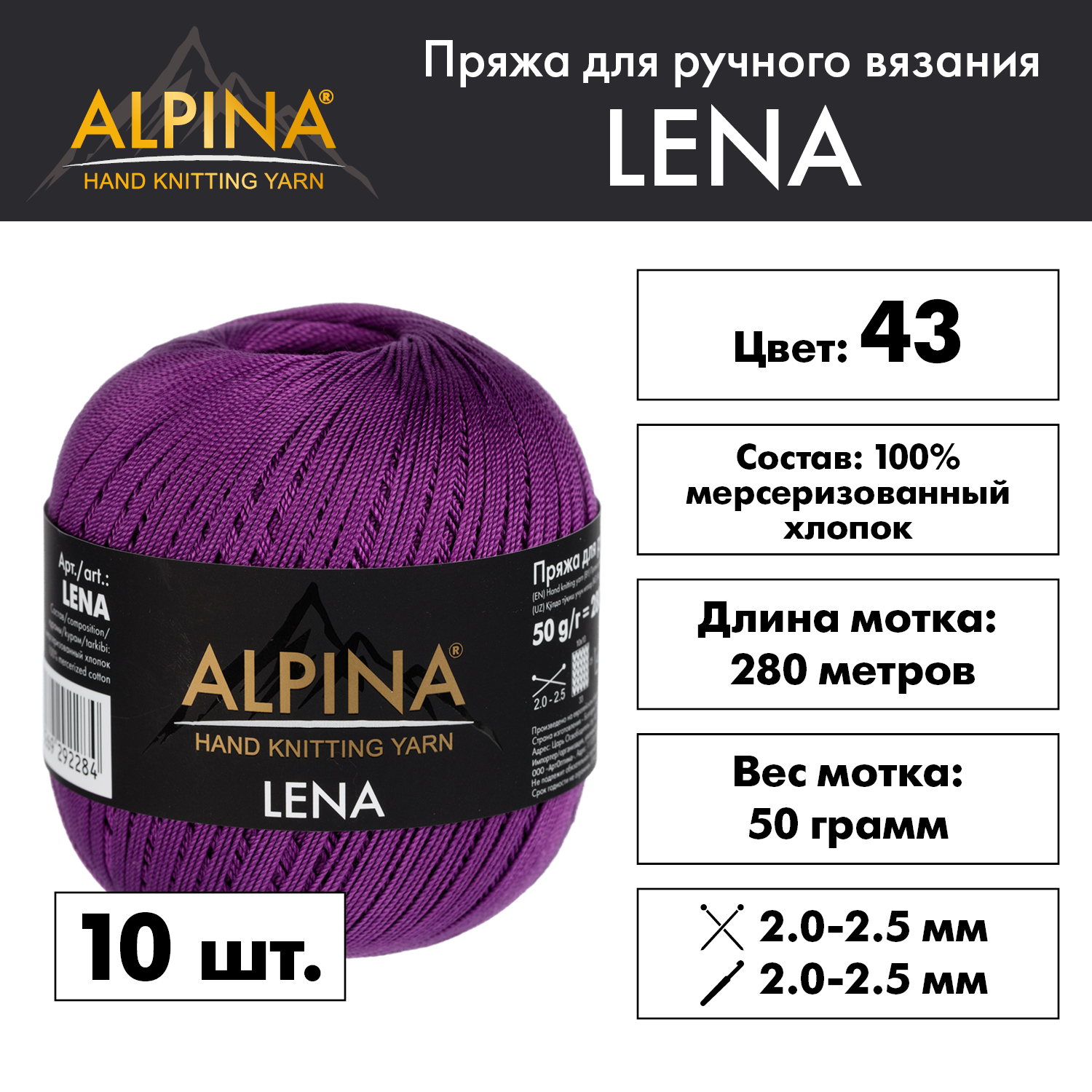 Купить Пряжа Alpina "LENA" 10 шт. по 50 г 100% мерсеризованный хлопок 280 м №43 т. сиреневый