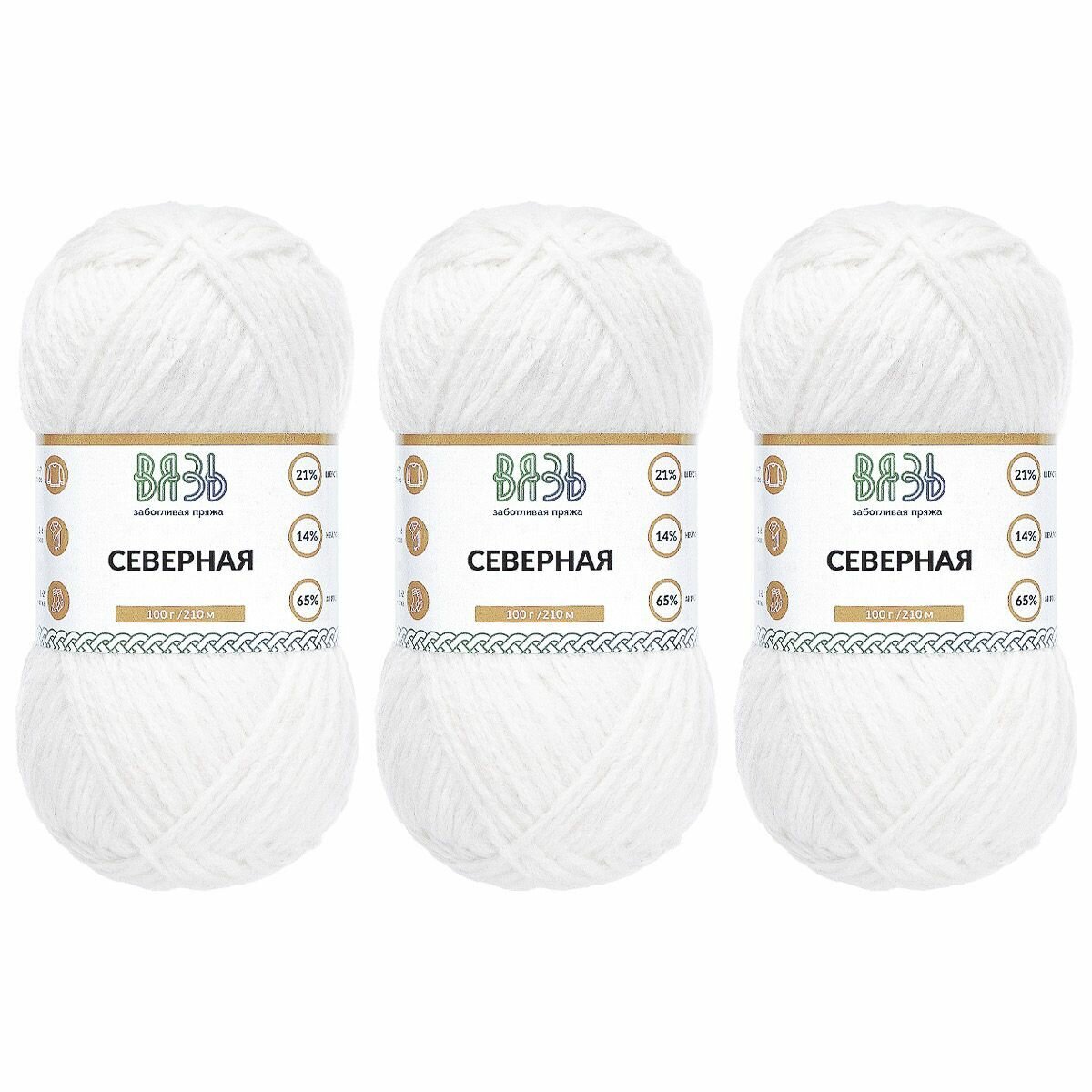 Купить Пряжа для вязания Вязь 'Северная' 100г, 210м (21% шерсть, 14% нейлон, 65% акрил) (01 белый), 3 мотка