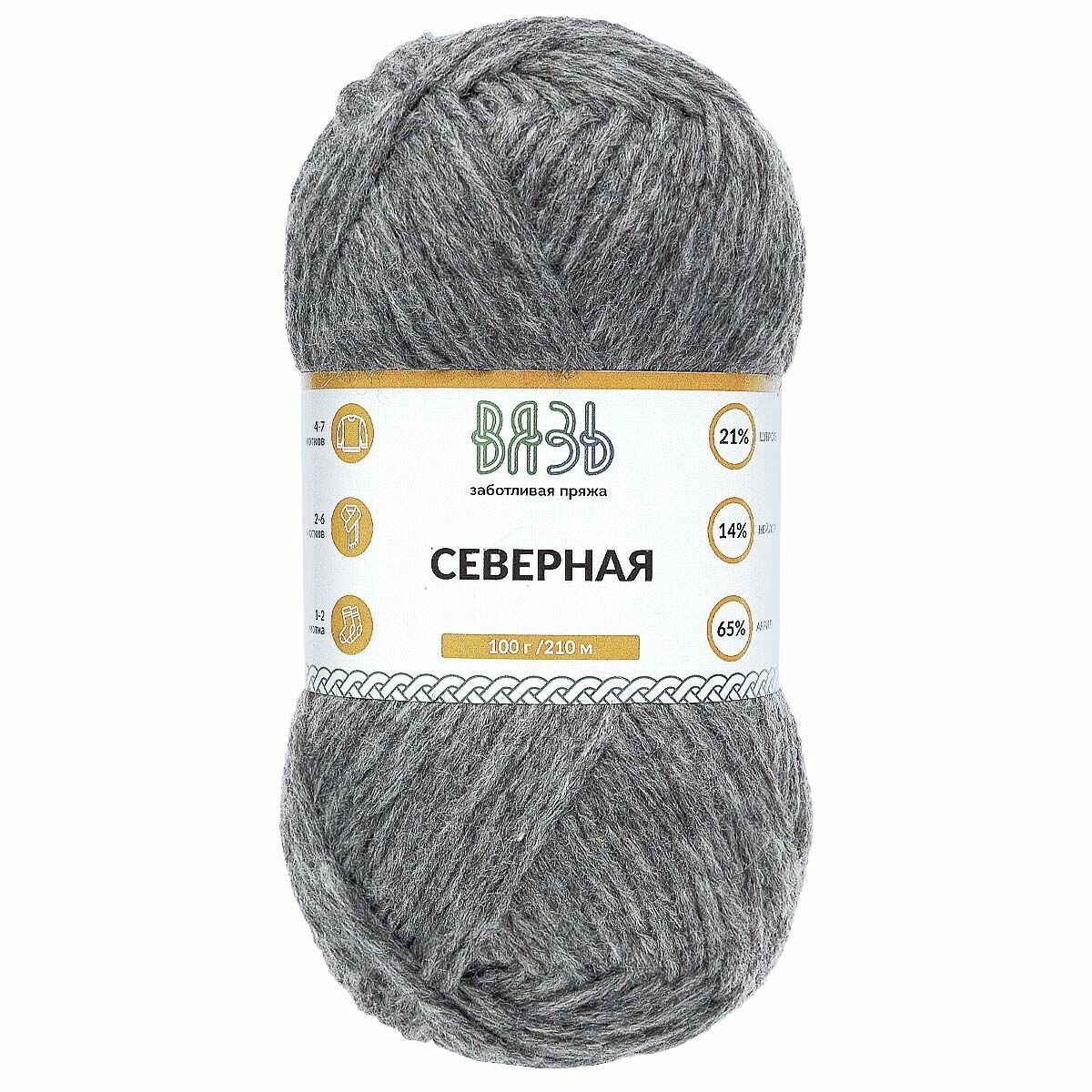 Купить Пряжа для вязания Вязь 'Северная' 100г, 210м (21% шерсть, 14% нейлон, 65% акрил) (07 серый), 3 мотка