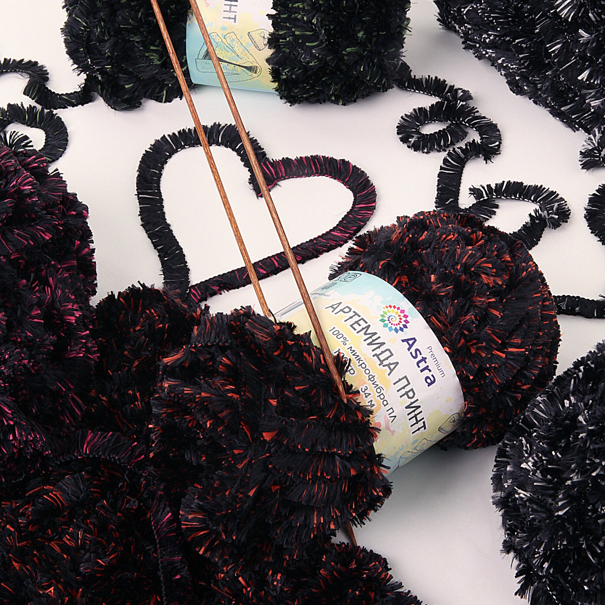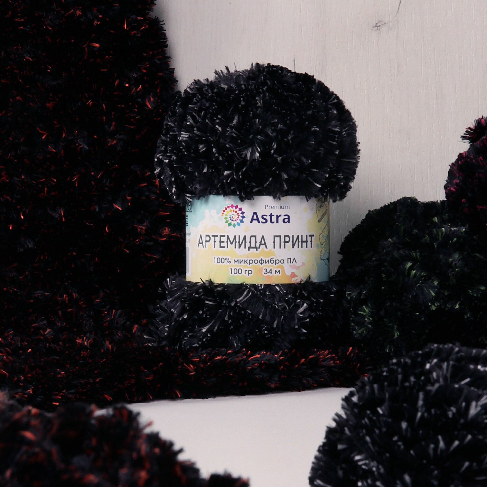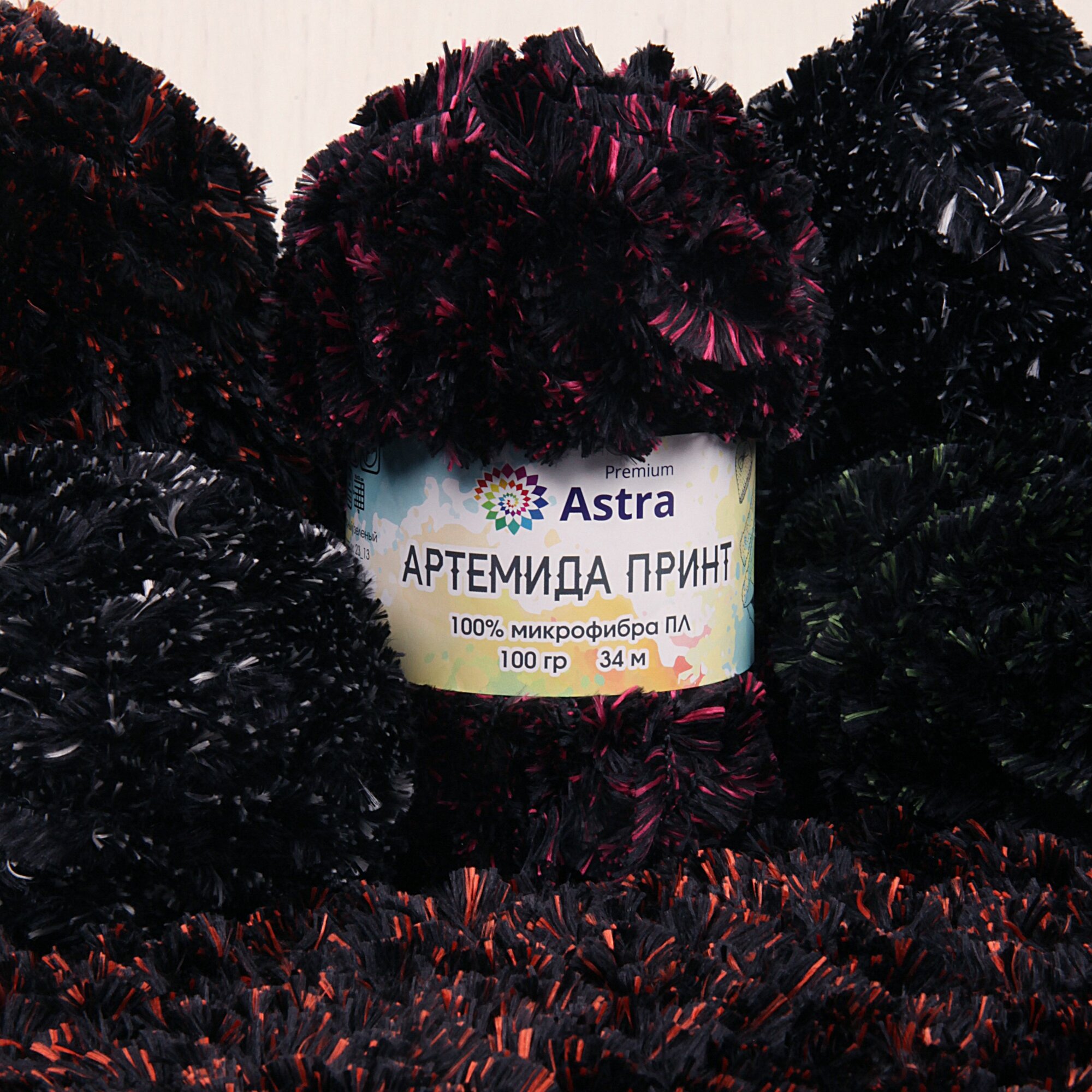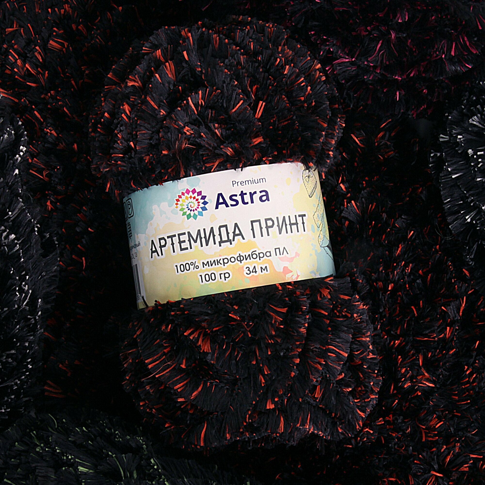 Пряжа для вязания Astra Premium 'Артемида Принт' 100г, 34м (100% микрофибра ПЛ) (05 черный/зеленый), 2 мотка интересное: