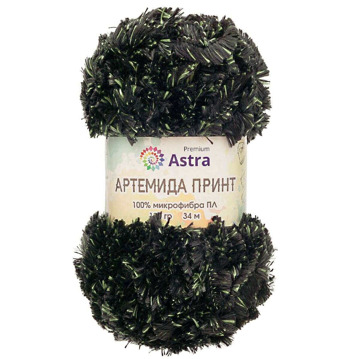 Купить Пряжа для вязания Astra Premium 'Артемида Принт' 100г, 34м (100% микрофибра ПЛ) (05 черный/зеленый), 2 мотка