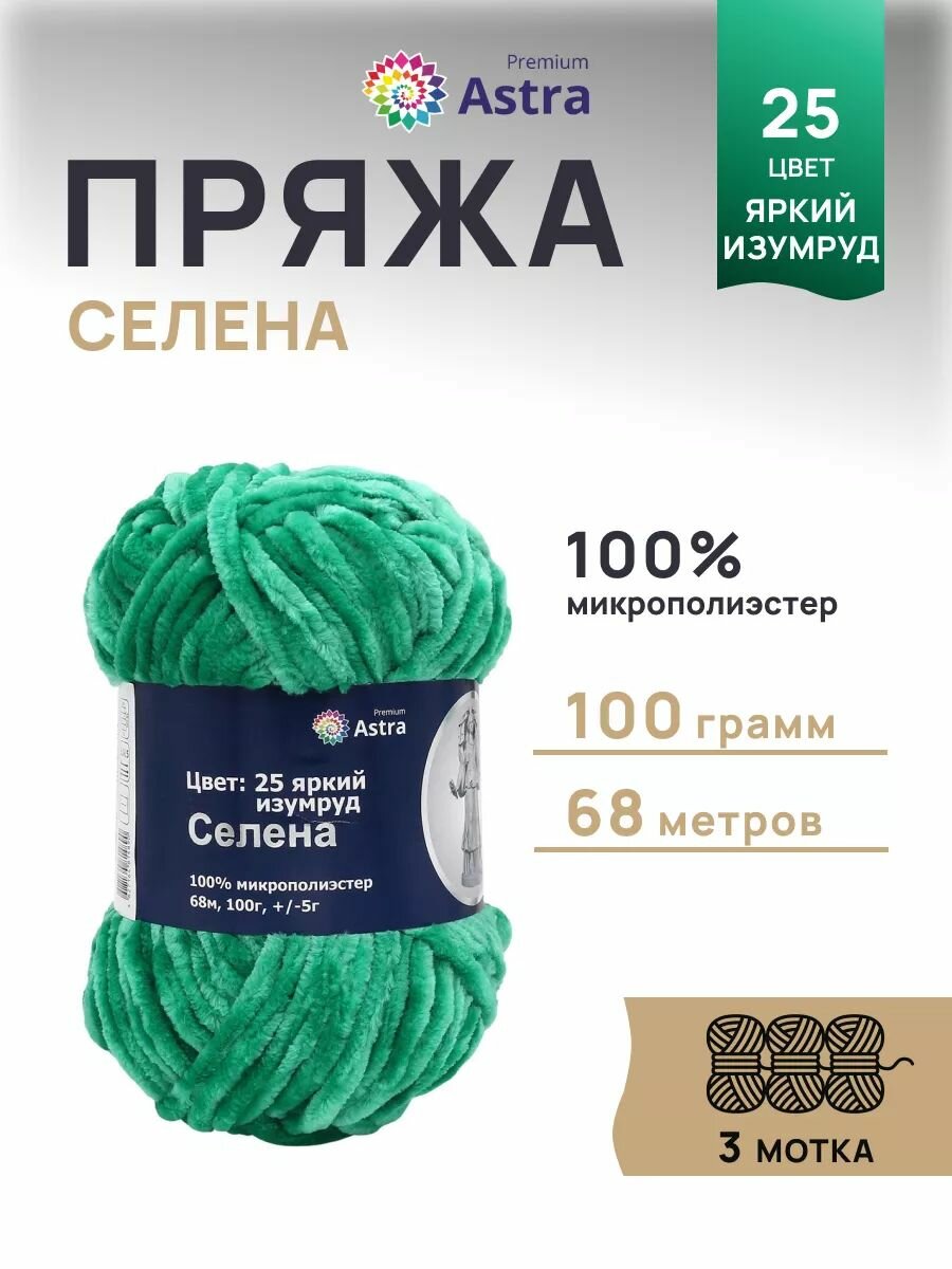Купить Пряжа для вязания Astra Premium 'Селена' 100г, 68м (100% микрополиэстер) (25 яркий изумруд), 3 мотка