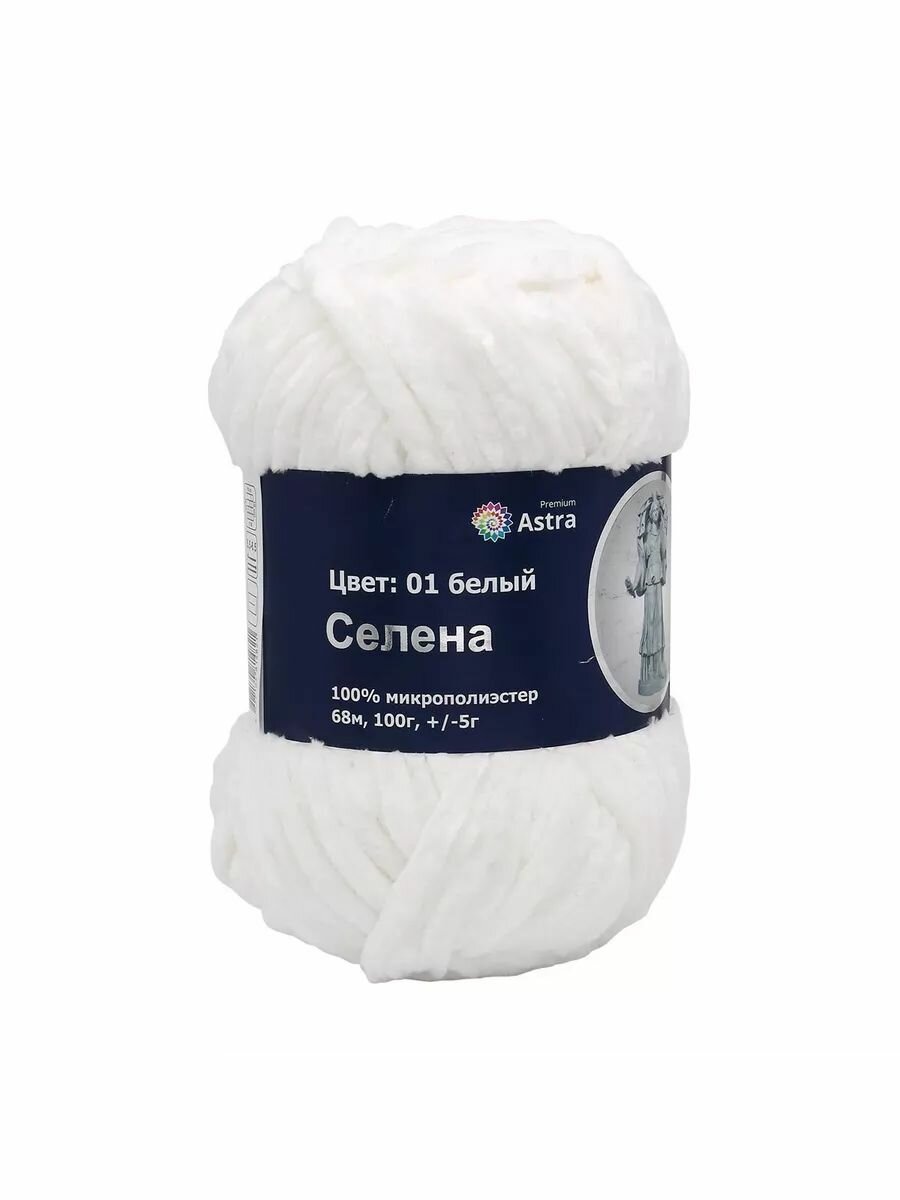 Купить Пряжа для вязания Astra Premium 'Селена' 100г, 68м (100% микрополиэстер) (01 белый), 3 мотка