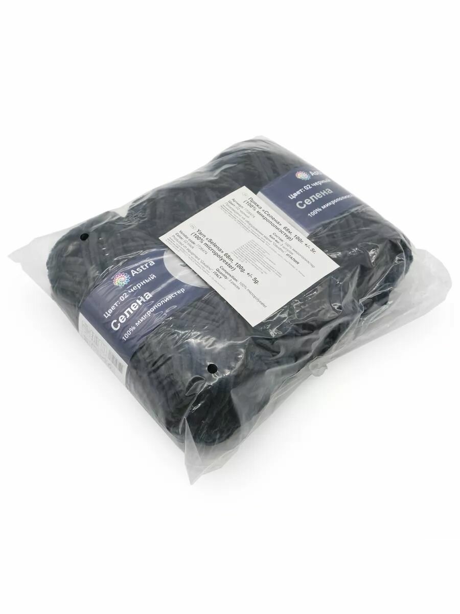 Купить Пряжа для вязания Astra Premium 'Селена' 100г, 68м (100% микрополиэстер) (02 черный), 3 мотка