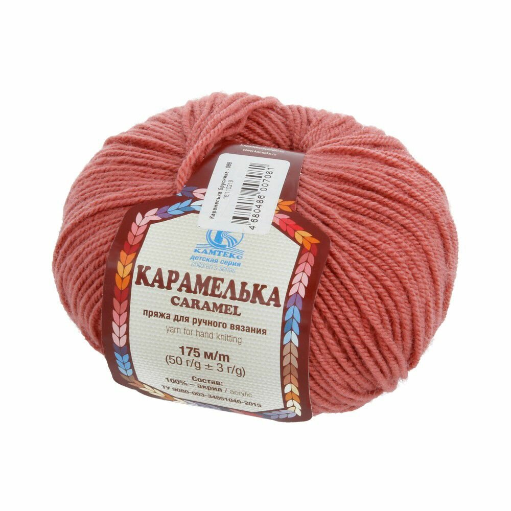Пряжа Камтекс Карамелька, цв. 050 Коралл, 1шт, 50г, 175 м, акрил 100%