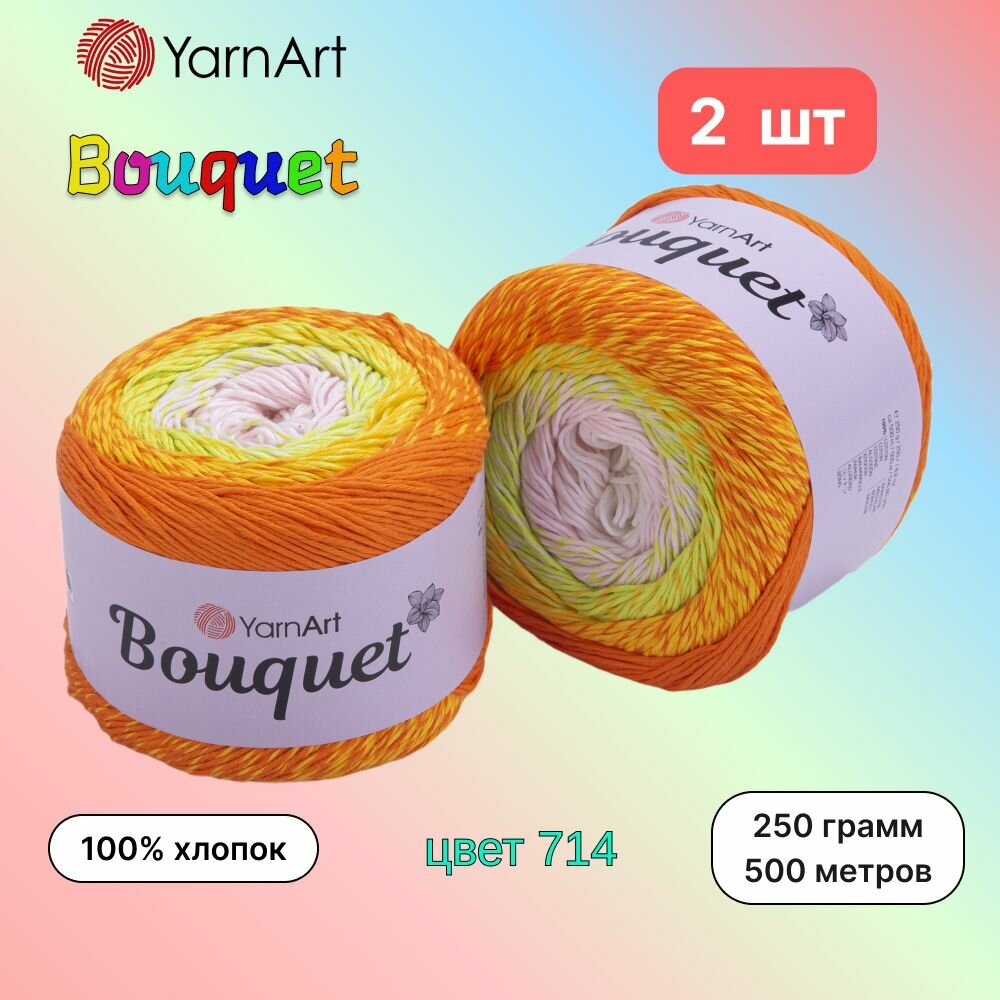 Пряжа YarnArt Bouquet Радужный (719) 2 мотка 250г/500м (100% хлопок) ярнарт букет