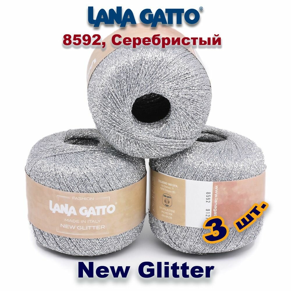 Купить Пряжа Lana Gatto New Glitter пряжа для вязания с люрексом Полиэстер: 51%, Нейлон: 49% Цвет: 8592, Серебристый (3 мотка)