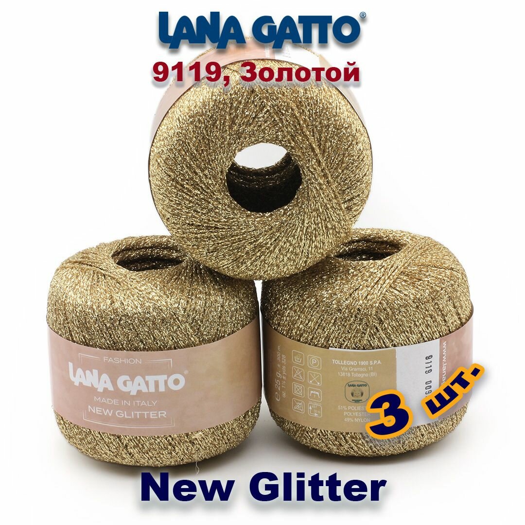 Купить Пряжа Lana Gatto New Glitter пряжа для вязания с люрексом Полиэстер: 51%, Нейлон: 49% Цвет: 9119, Золотой (3 мотка)