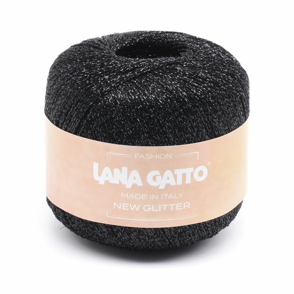 Пряжа Lana Gatto New Glitter пряжа для вязания с люрексом Полиэстер: 51%, Нейлон: 49% Цвет: 8591, Черный(1 моток)