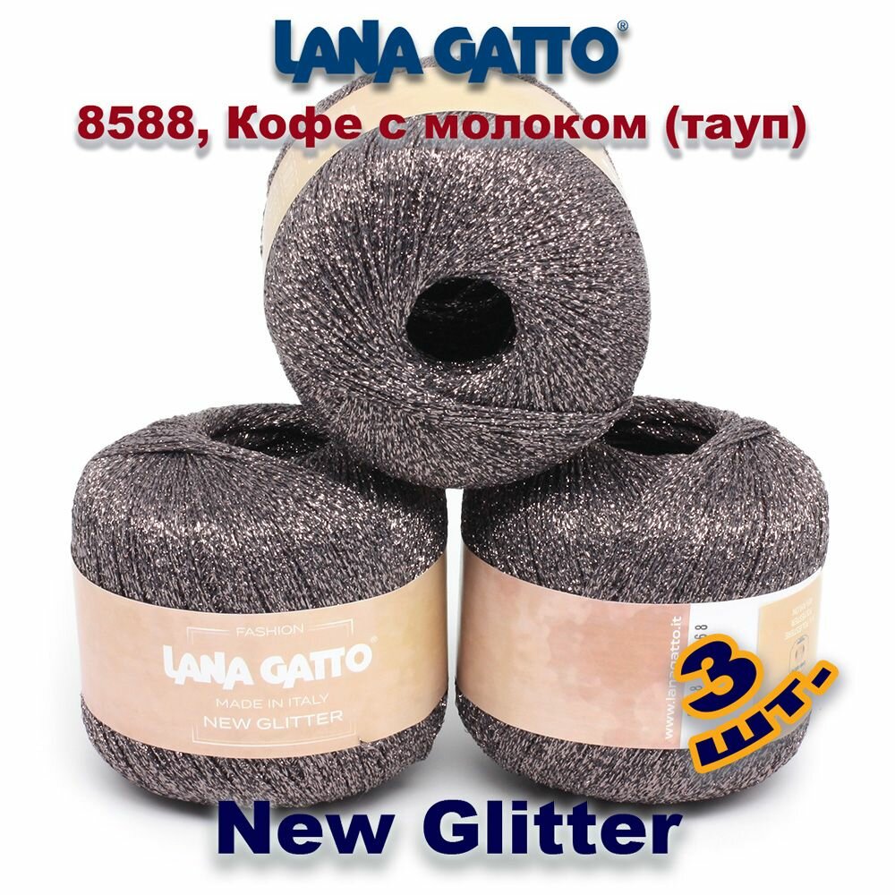 Пряжа Lana Gatto New Glitter пряжа для вязания с люрексом Полиэстер: 51%, Нейлон: 49% Цвет: 8588, Кофе с молоком (тауп)(1 моток)