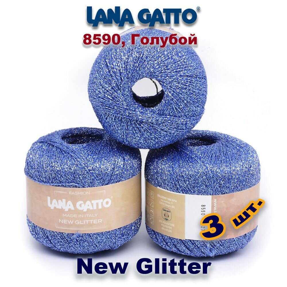 Купить Пряжа Lana Gatto New Glitter пряжа для вязания с люрексом Полиэстер: 51%, Нейлон: 49% Цвет: 8590, Голубой (3 мотка)