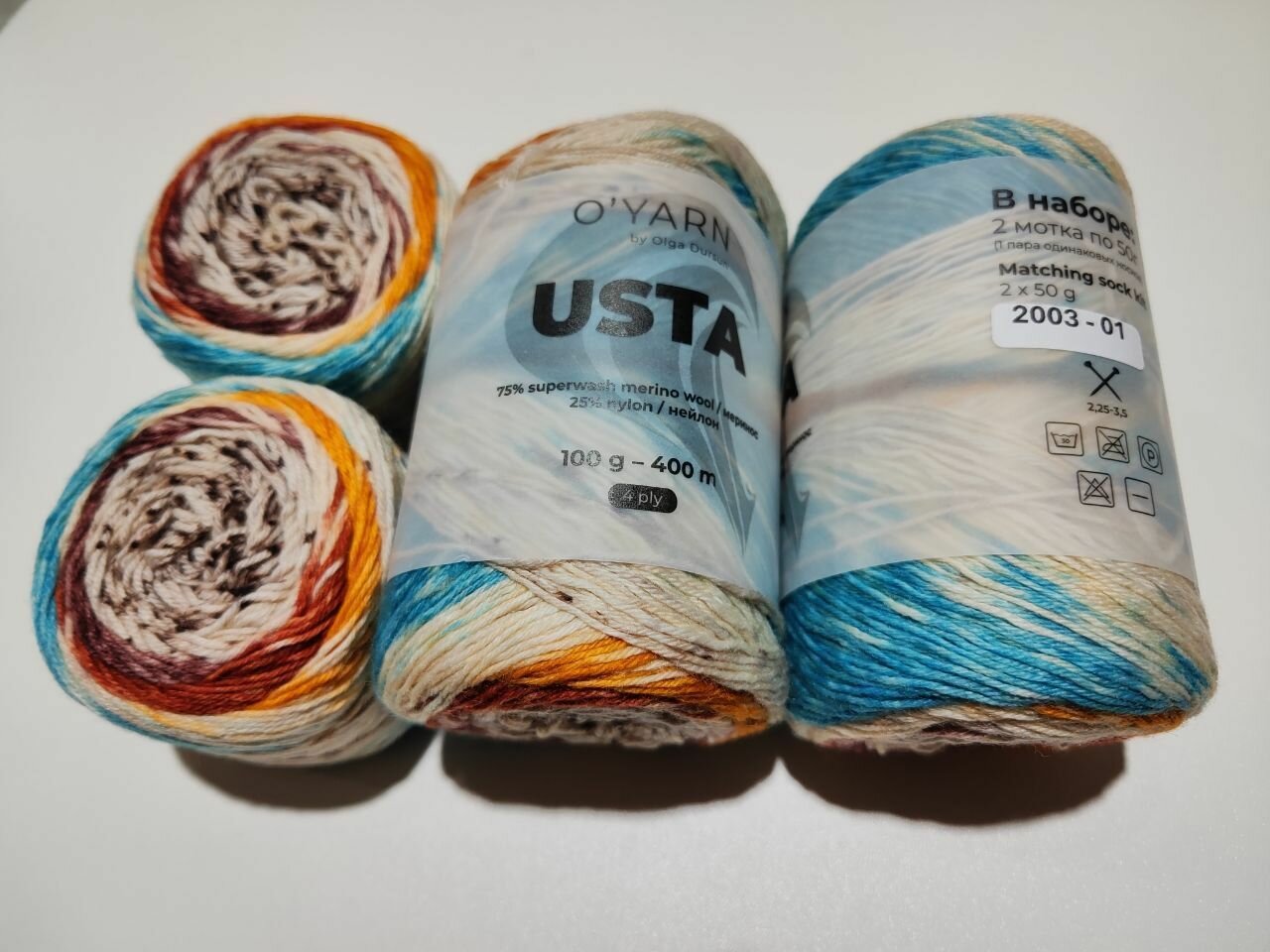 Купить Пряжа носочная USTA O'YARN 100г.(2*50г) арт.2003 состав: 75 % шерсть меринос, 25% нейлон Метраж: 400 м./100 г.