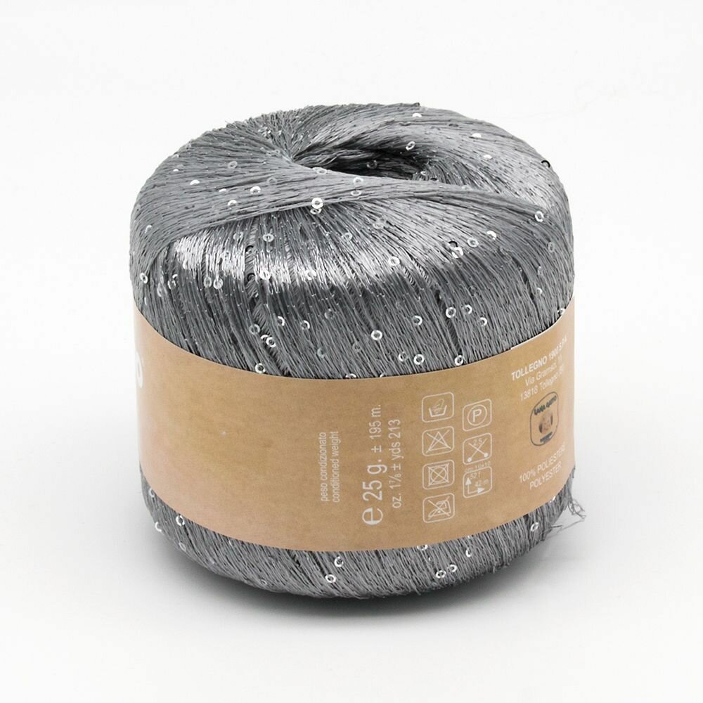 Пряжа Lana Gatto Paillettes// пряжа для вязания с пайетками// Полиэстер: 100% Цвет: 8603, Серебро / серый (3 мотка)