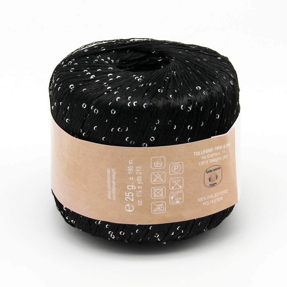 Пряжа Lana Gatto Paillettes пряжа для вязания с пайетками Полиэстер: 100% Цвет: 8606, Черный (1 моток)
