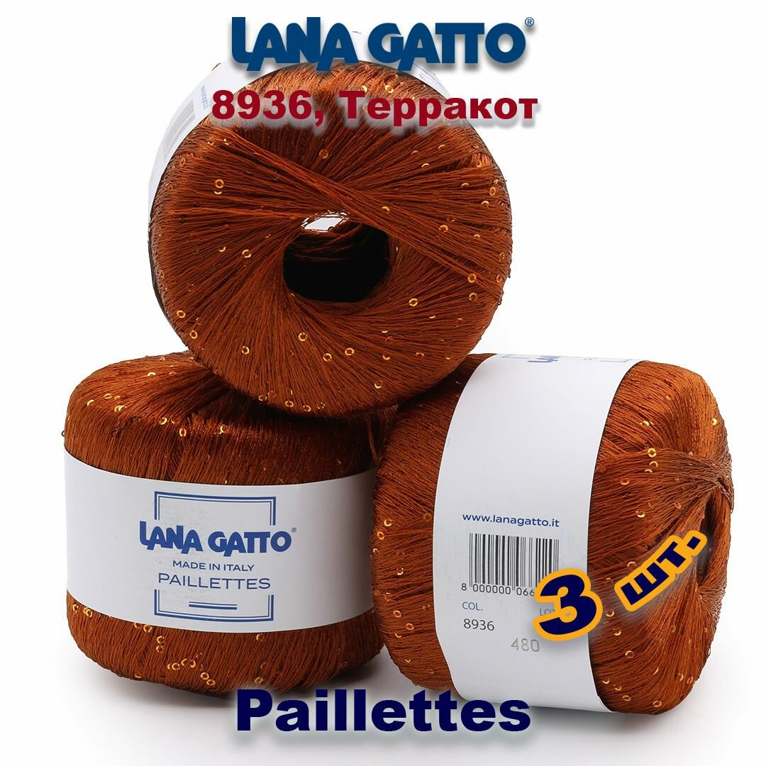 Пряжа Lana Gatto Paillettes пряжа для вязания с пайетками Полиэстер: 100% Цвет: 8936, Терракот (1 моток)