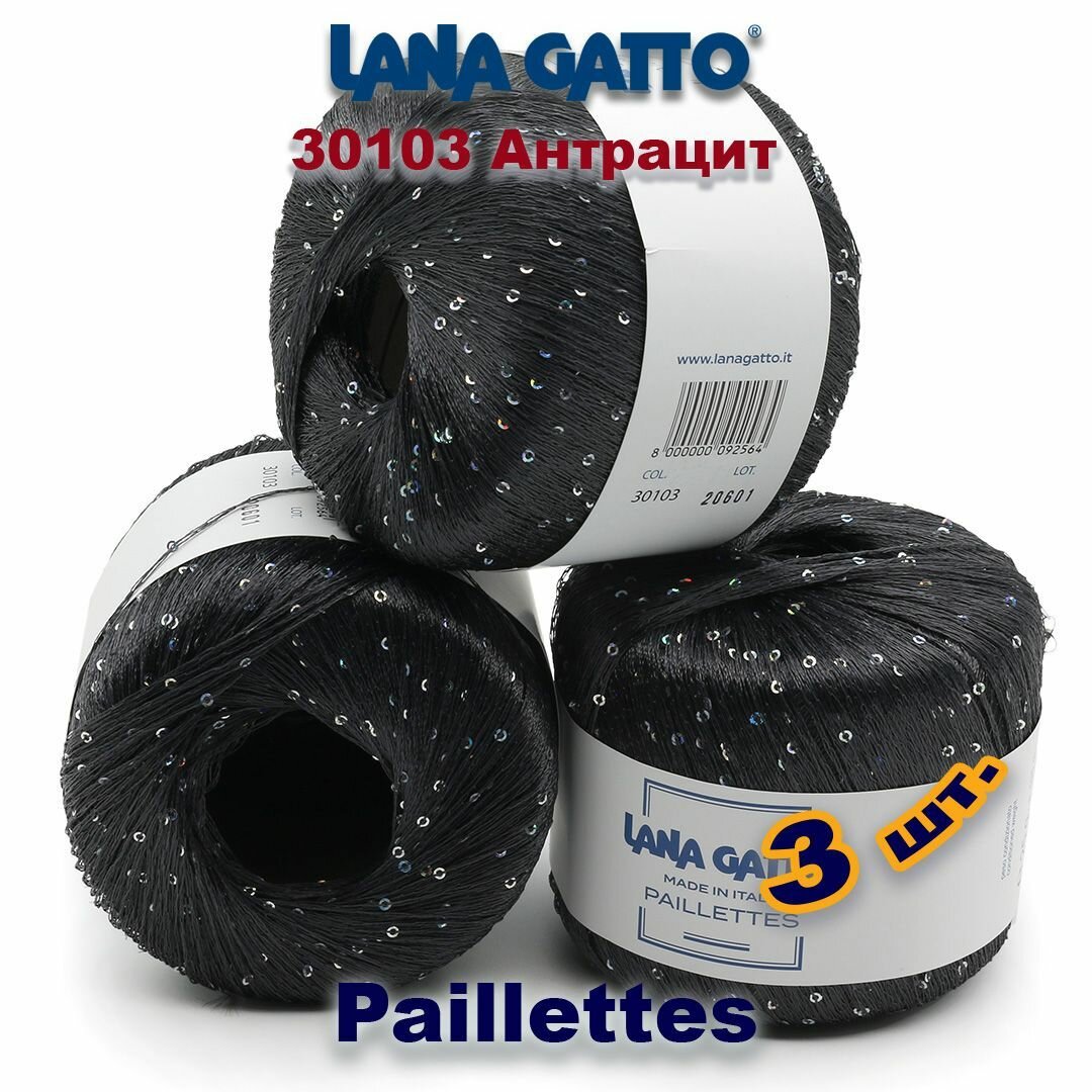 Купить Пряжа Lana Gatto Paillettes// пряжа для вязания с пайетками// Полиэстер: 100% Цвет: 30103, Антрацит / ANTRACITE (3 мотка)