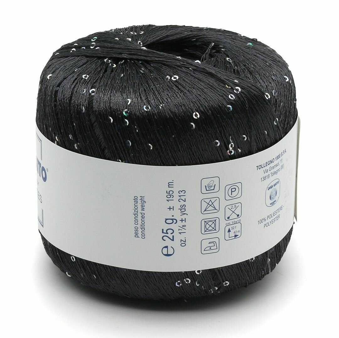 Пряжа Lana Gatto Paillettes пряжа для вязания с пайетками Полиэстер: 100% Цвет: 8606, Черный (1 моток)